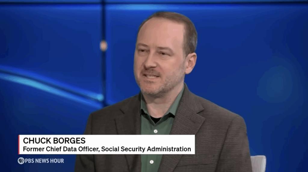 At left: Chuck Borges appears on PBS NewsHour in 2026. Watch the segment.